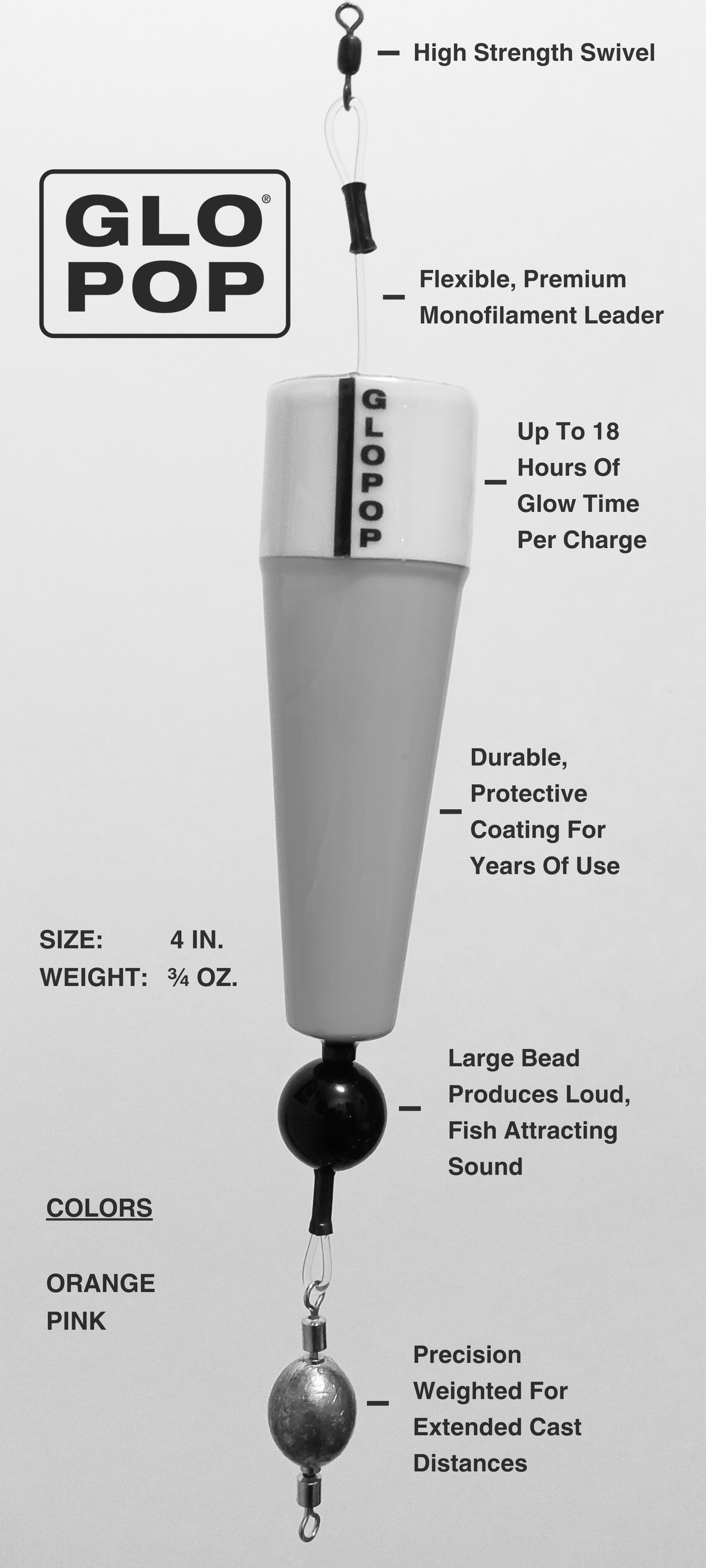 Designed for anglers seeking unsurpassed visibility in nearly all low light fishing conditions, the GloPop® glow in the dark popping cork offers anglers a clear advantage from dusk until dawn.